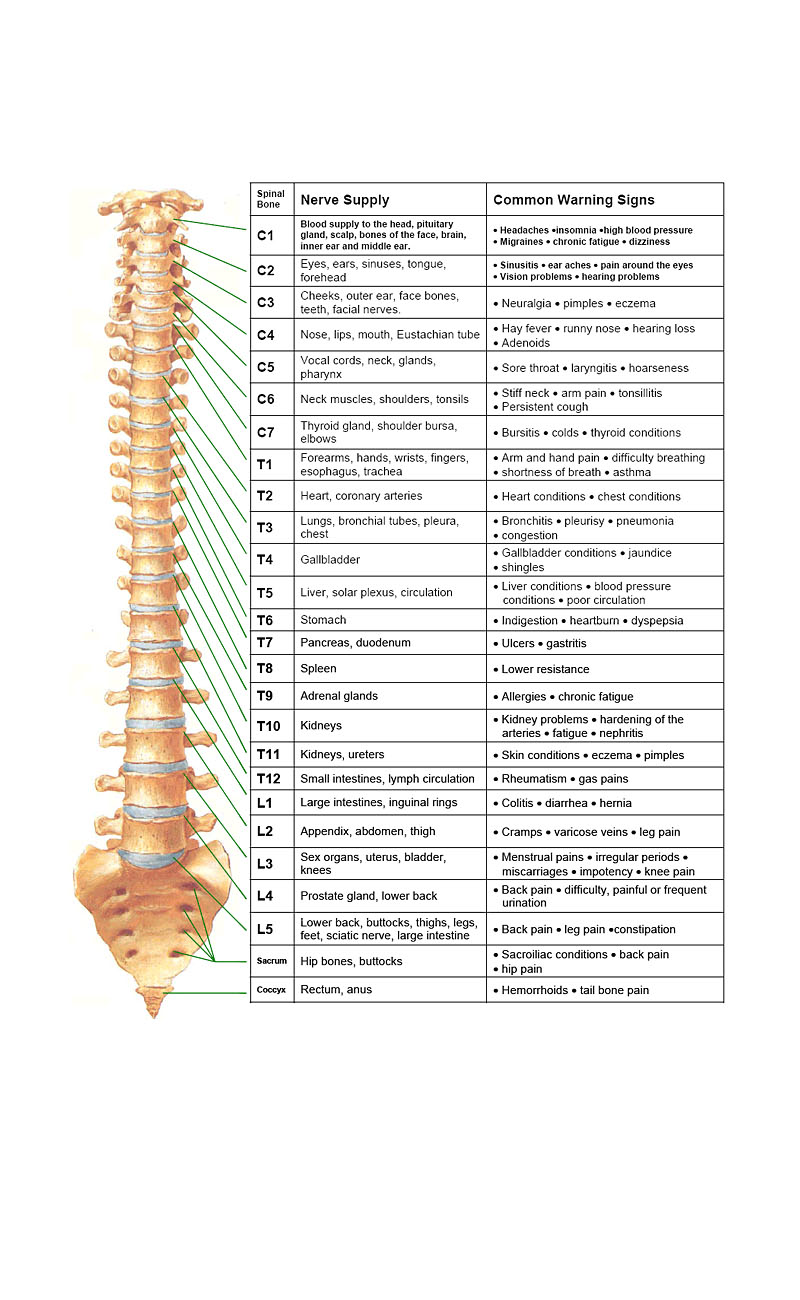 Having this close and intimate relationship, biochemical and structural problems in the spinal column can easily irritate different areas of the enclosed nervous system. This often results in noxious inflammatory biochemicals released during tissue injury or from direct mechanical pressure. Whatever the case may be, when your nervous system is not functioning at an optimal level and is in a real sense impaired, it will have a negative influence over the functioning of your cells, tissues and organs which are all controlled by the affected nerve. The resulting ailment(s) depends on the cells, tissues, and organs affected and the extent of nervous system compromised.